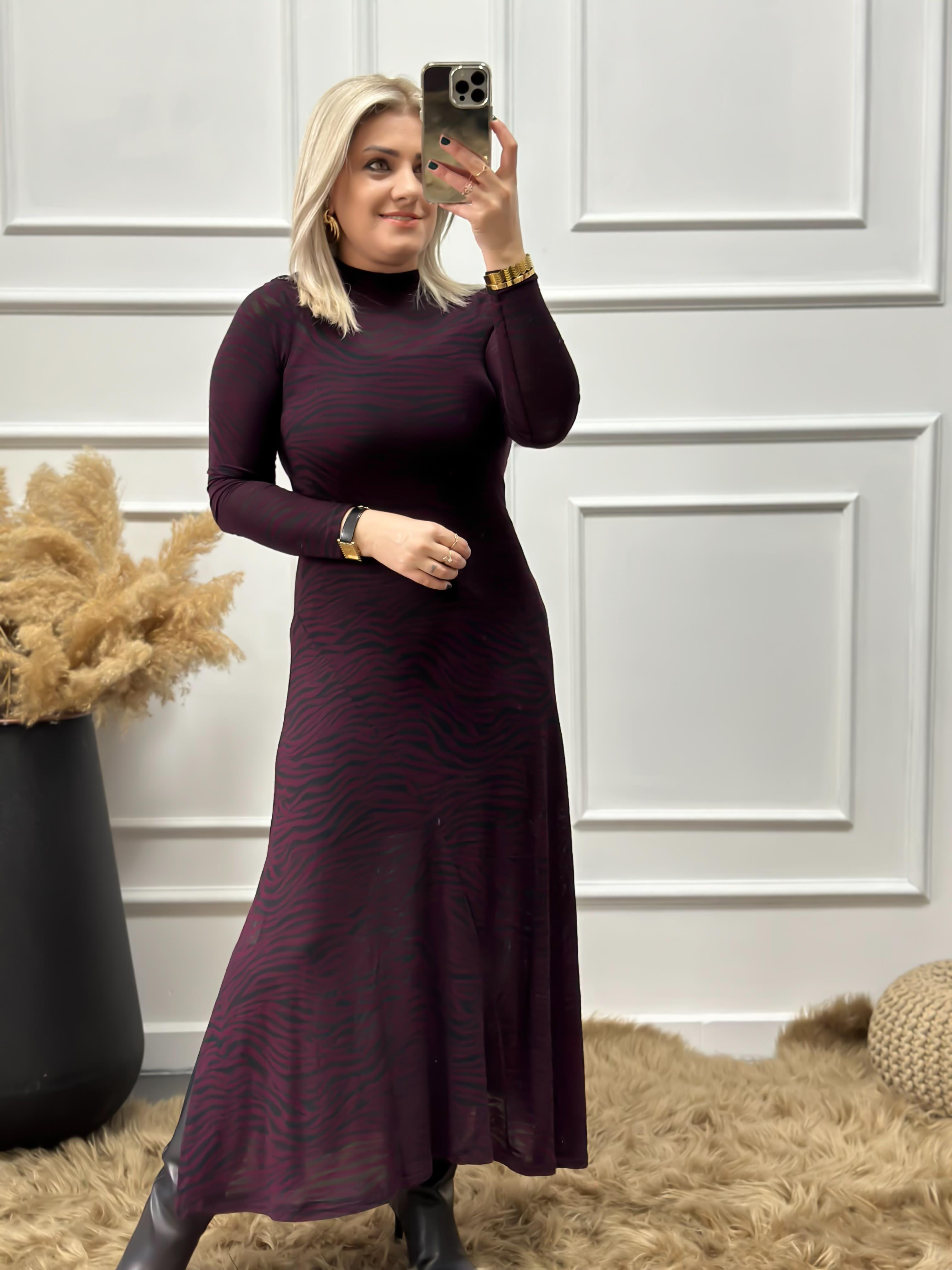 Astarlı Asimetrik Önden Yırtmaçlı Elbise BORDO (23MeELB00009)