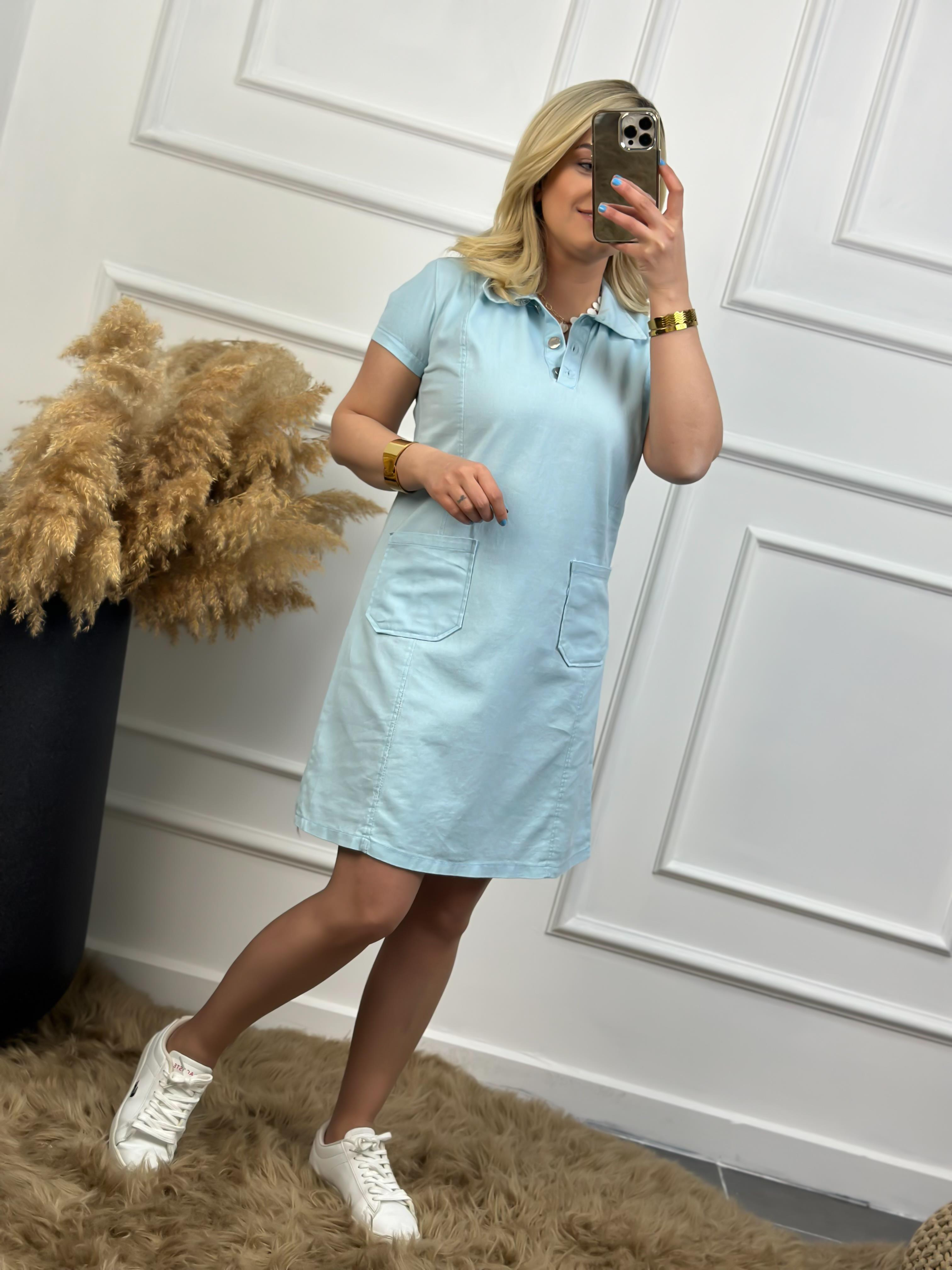Gömlek Yaka Cepli Gabardin Elbise BEBE MAVİ (23YELB000022)