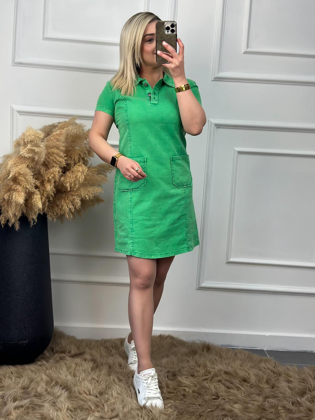Gömlek Yaka Cepli Gabardin Elbise TAŞLANMIŞ YEŞİL (23YELB000022)