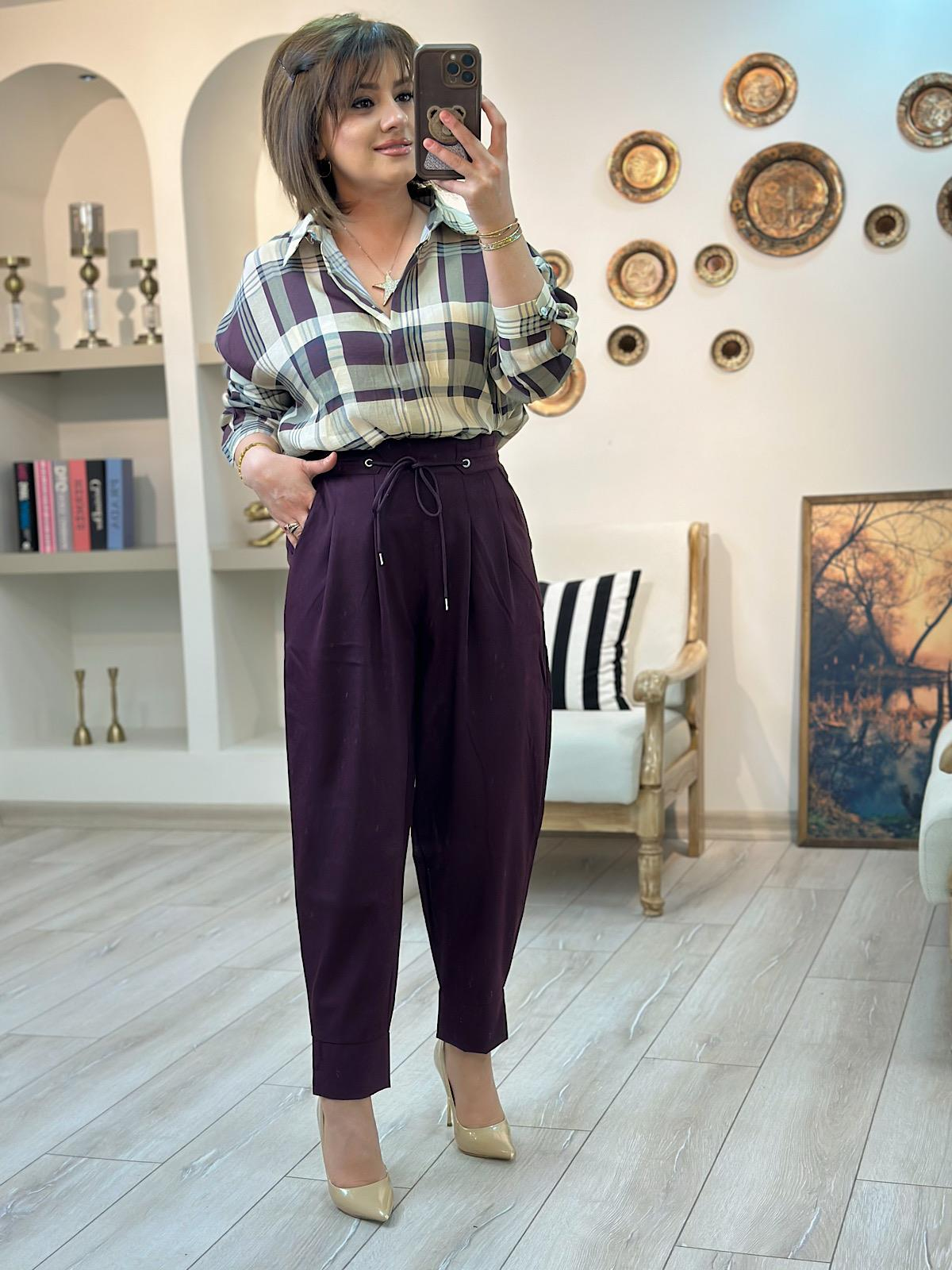 Pilise Detay Beli Lastikli Havuç Pantolon MÜRDÜM (23YALT000092)
