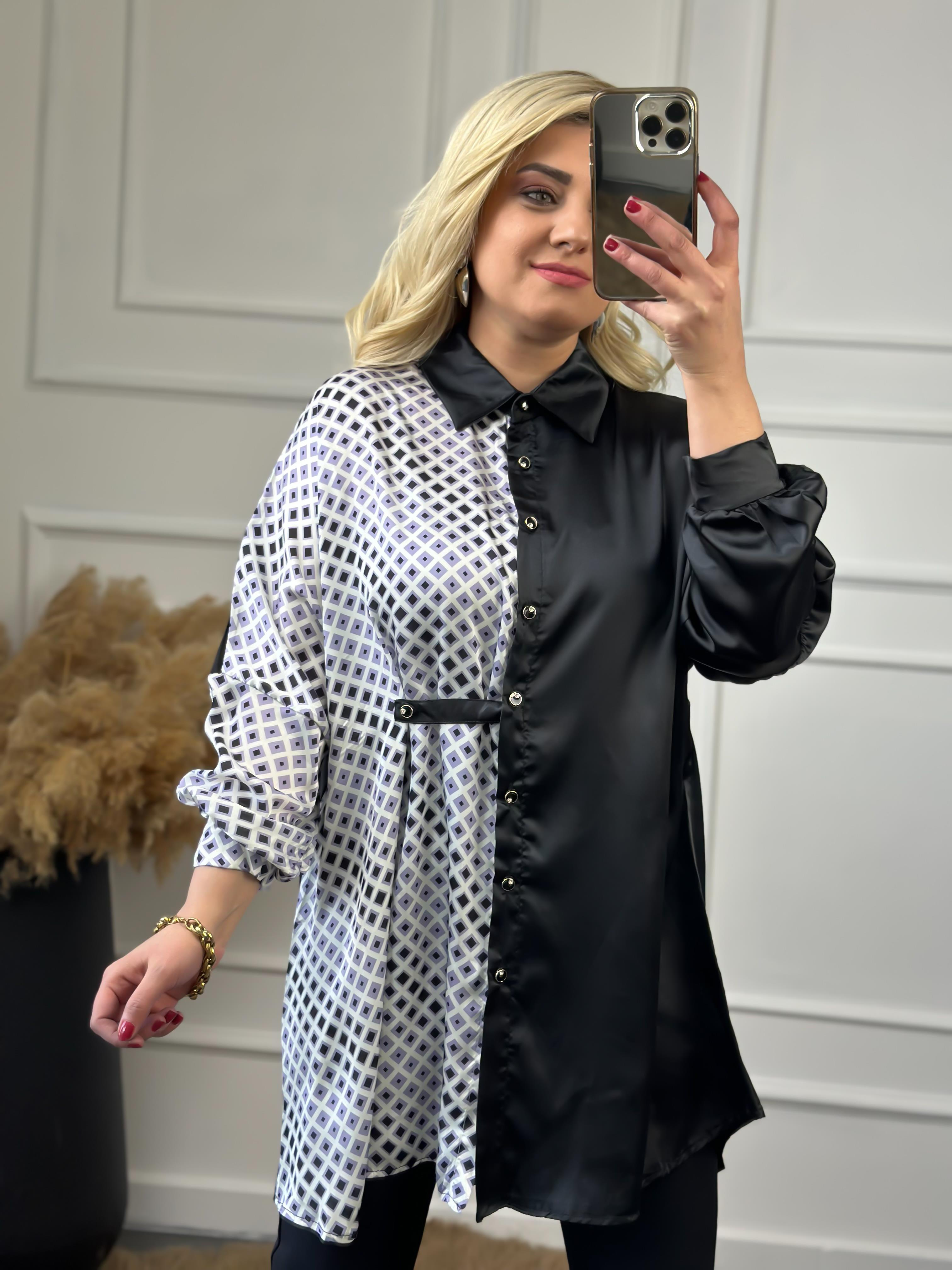 Tek Tarafı Desenli Önü Düğmeli Jakarlı Gömlek MOR-23MeUST00080