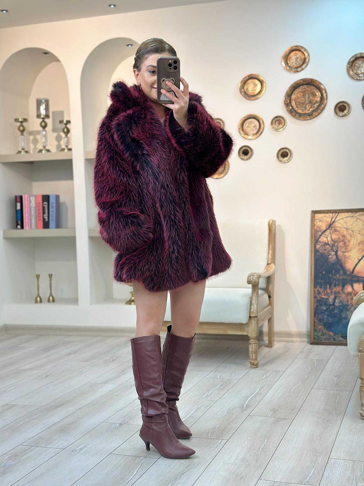 Women Yakalı Premium Kalite Kürk BORDO (23YDIS000016)